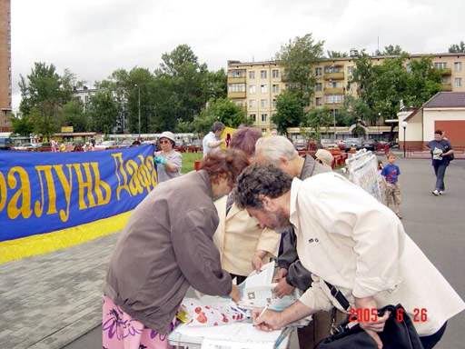欧洲民众毫不犹豫的签名支持立即制止迫害。2006-01-23-