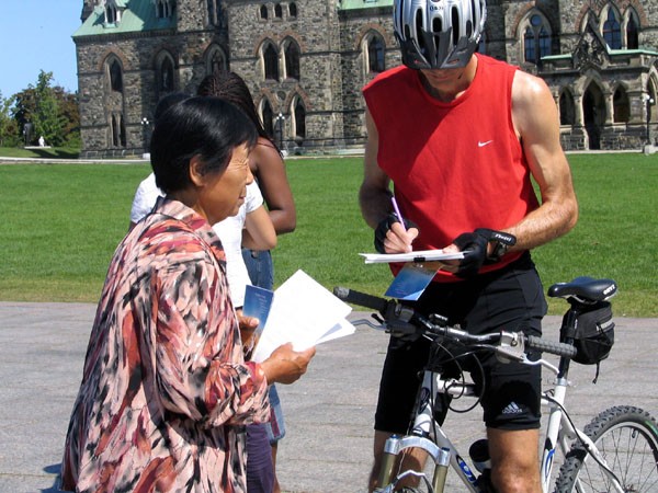十万加拿大人联名上书总理 促胡停止迫害法轮功 - 路人在联名信上签名