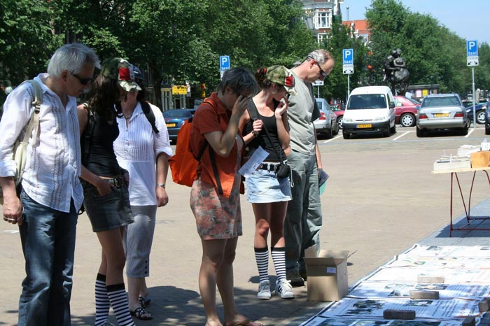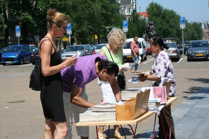 荷兰学员声援1100万勇士声明退出中共,揭中共盗售法轮功学员器官暴行。图为民众观看迫害真相 2006-7-1