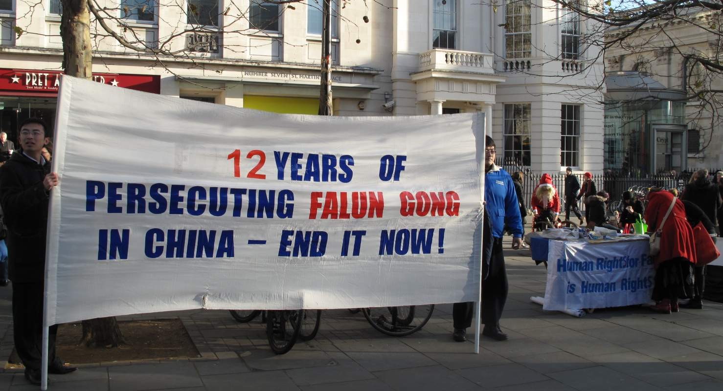 法轮功学员在伦敦唐人街、揭露中共器官贩卖牟利的暴行