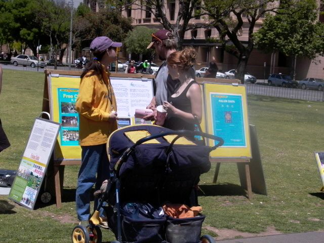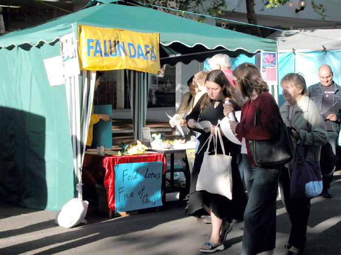 澳洲塔省候巴特市“真、善、忍”周庆祝活动--学员们在集市上介绍法轮功的真相