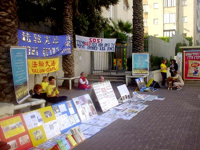 以色列法轮功学员7.20三周年之际练功,发传单讲真相