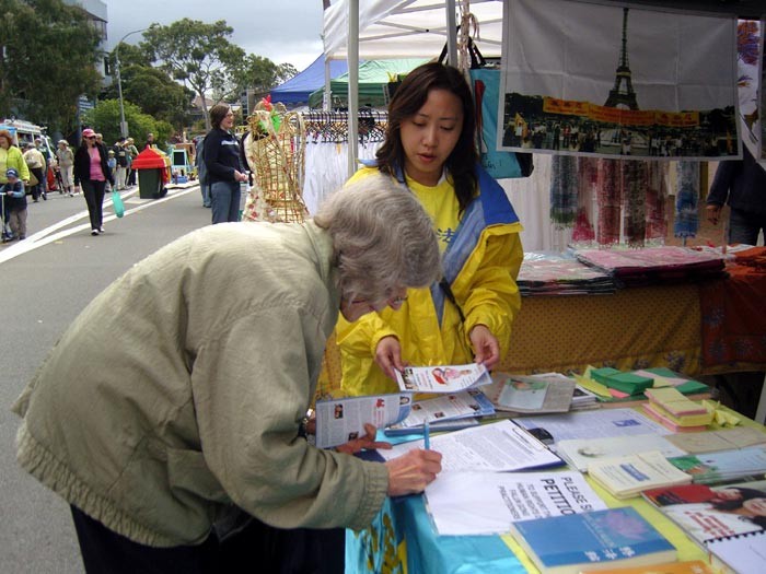法轮功学员应邀参加西澳海德公园社区活动洪法图为民众了解真相,签名支持法轮功2008-3-2至3