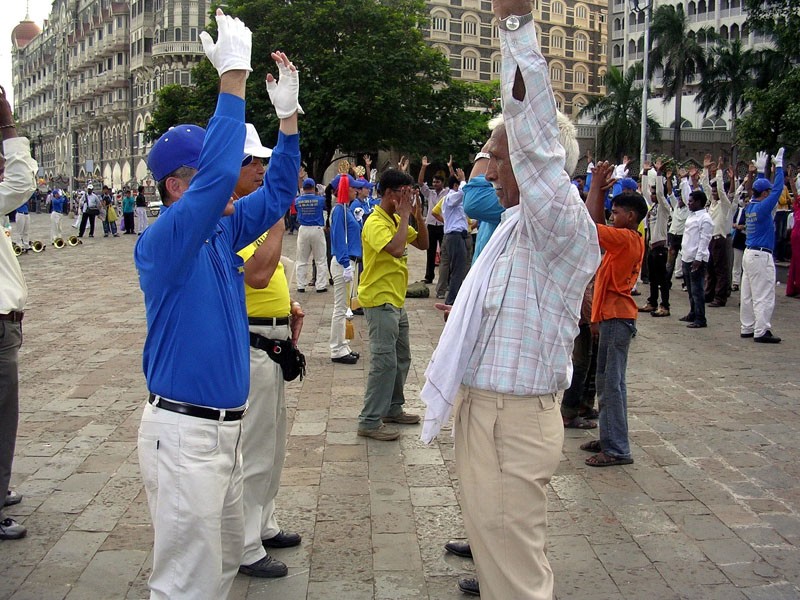 印度八十所学校师生修炼法轮功图为邦加罗尔花展期间向民众讲述大法的美好2008-8-15