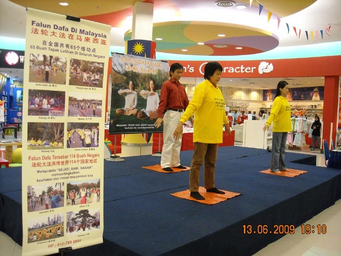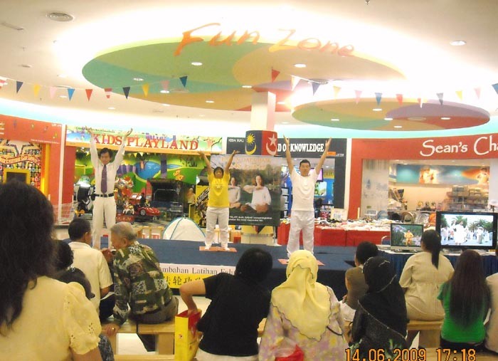 法轮功学员受马来西亚一家大型超市之邀请,演示祥和优美的功法