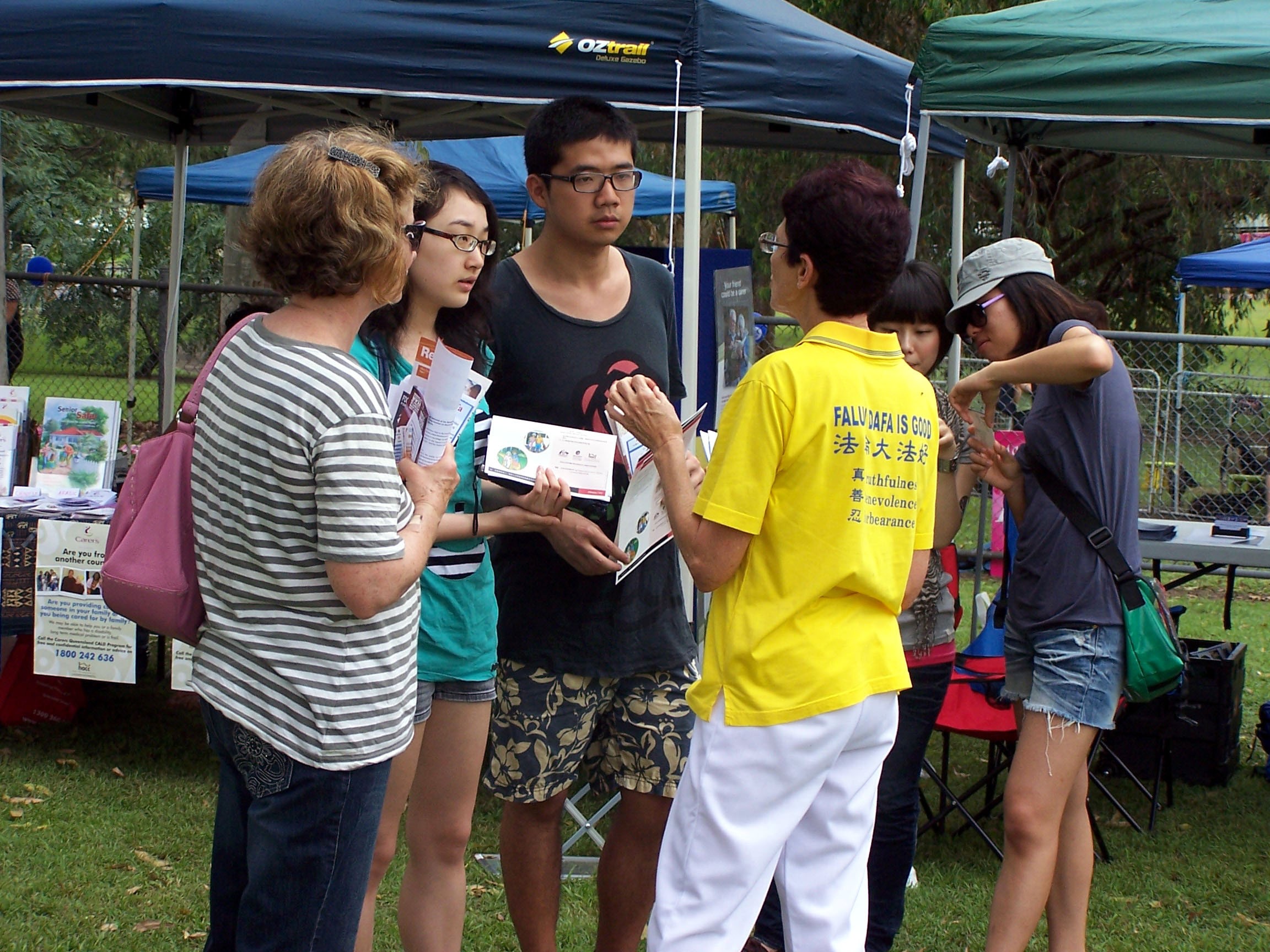 法轮功学员应邀参加澳洲昆省的图文巴市举办的“语言和多元文化节”展位上吸引许多民众2008-8-10