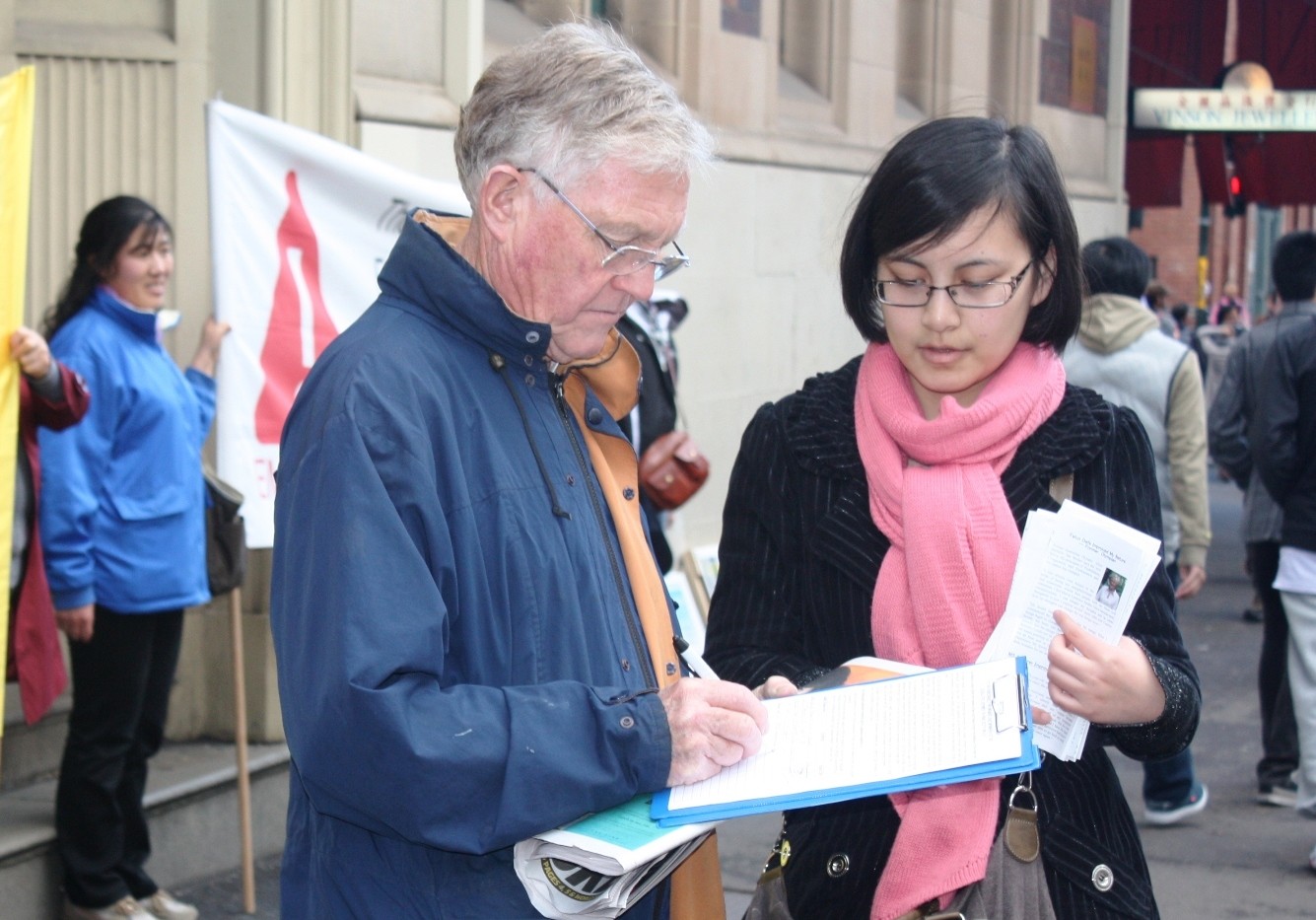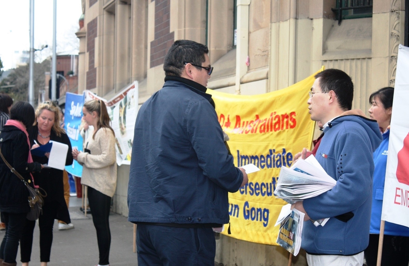 悉尼学员讲真相 路人签名声援法轮功反迫害