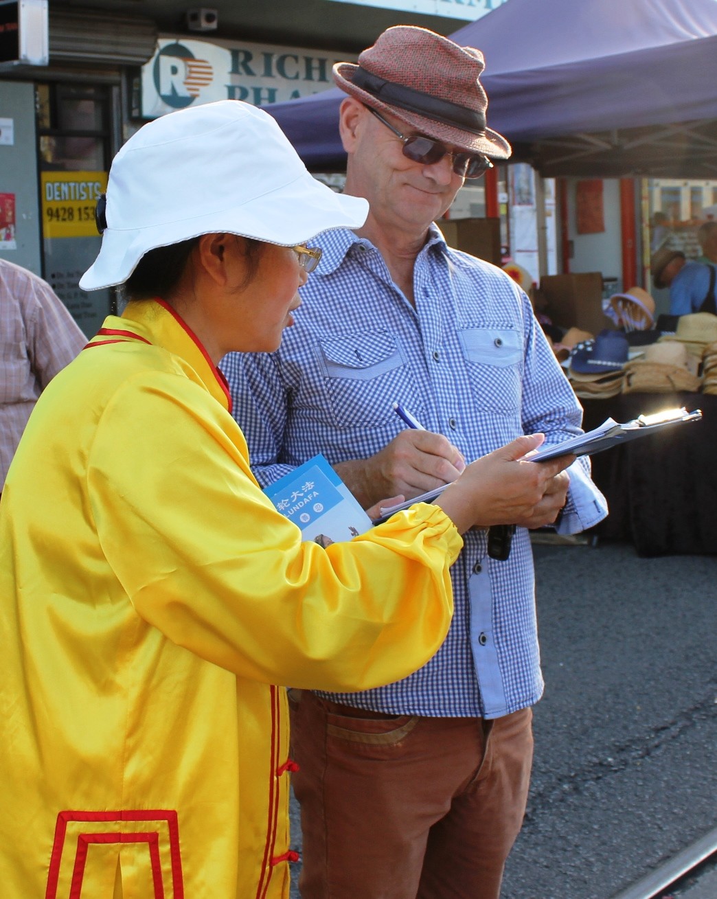 法轮功学员在悉尼亚洲美食节传播真相,人们签名支持制止活摘器官罪行