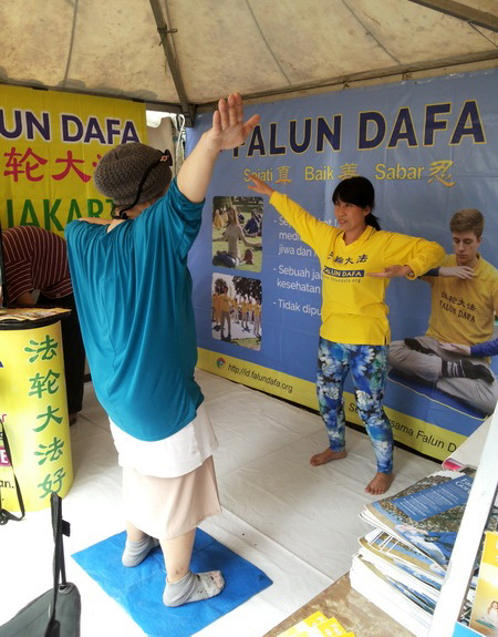 印尼学员在大型购物中心內,民众们学炼法轮功