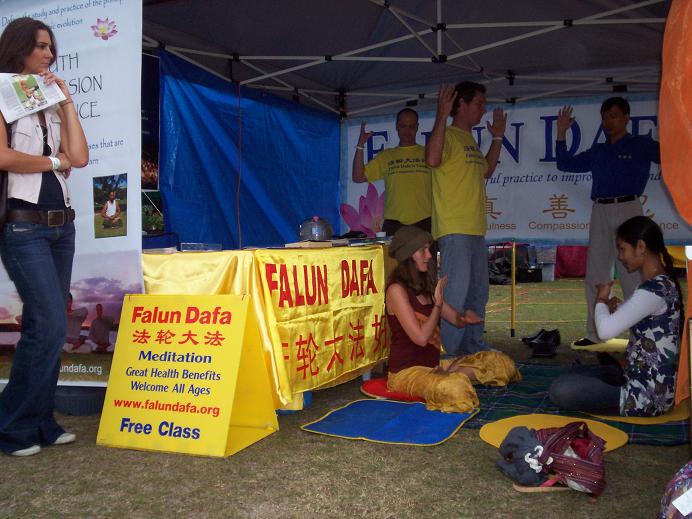法轮功学员参加悉尼的“地球节”活动,前来展位上学功的人们络绎不绝2008-11-29
