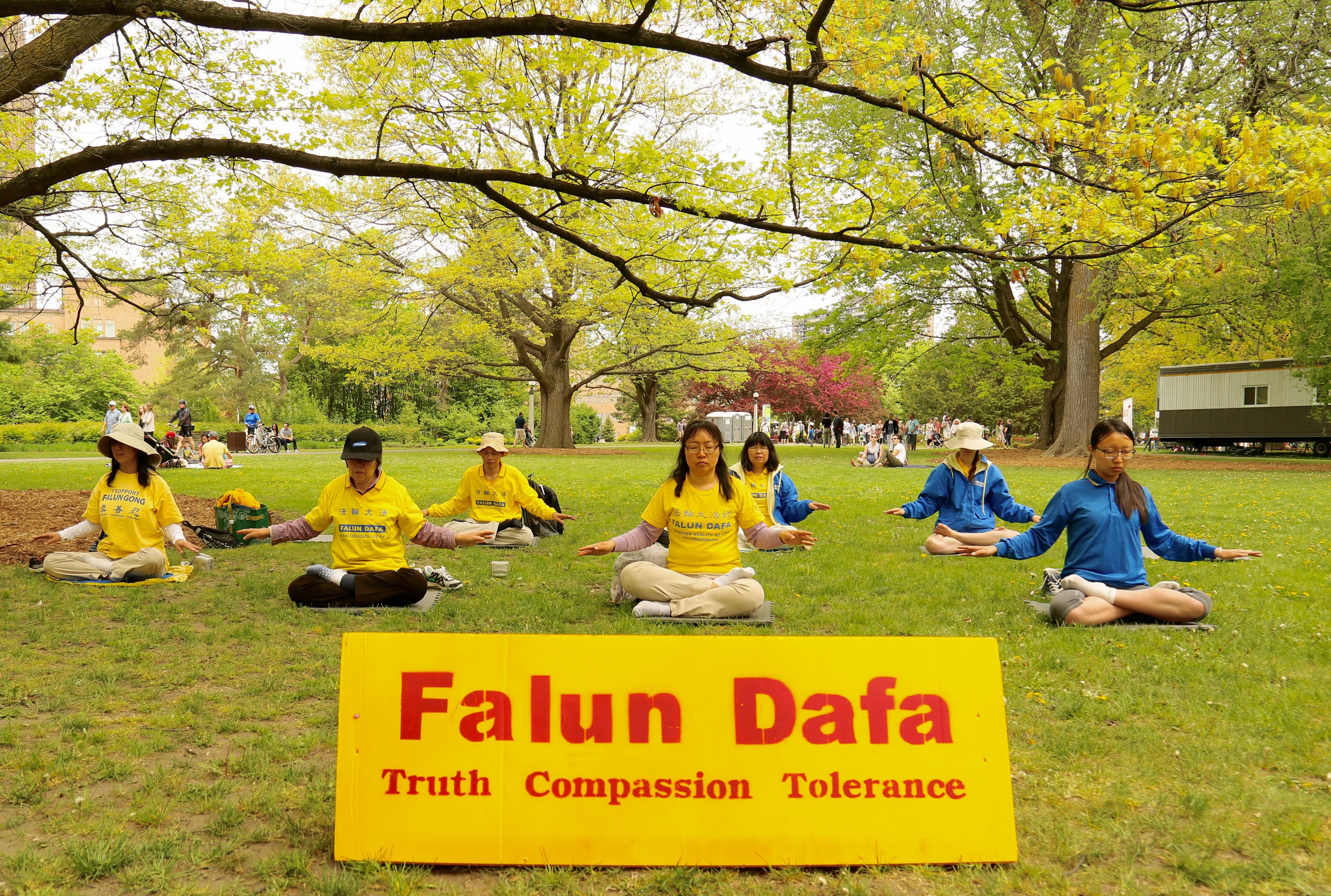 法轮功学员参加丁香节,设立展位,与民众分享法轮大法的美好