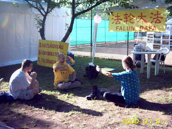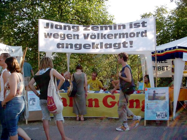 法轮功在德国卡尔斯鲁厄市的综合文化音乐节上的展位
