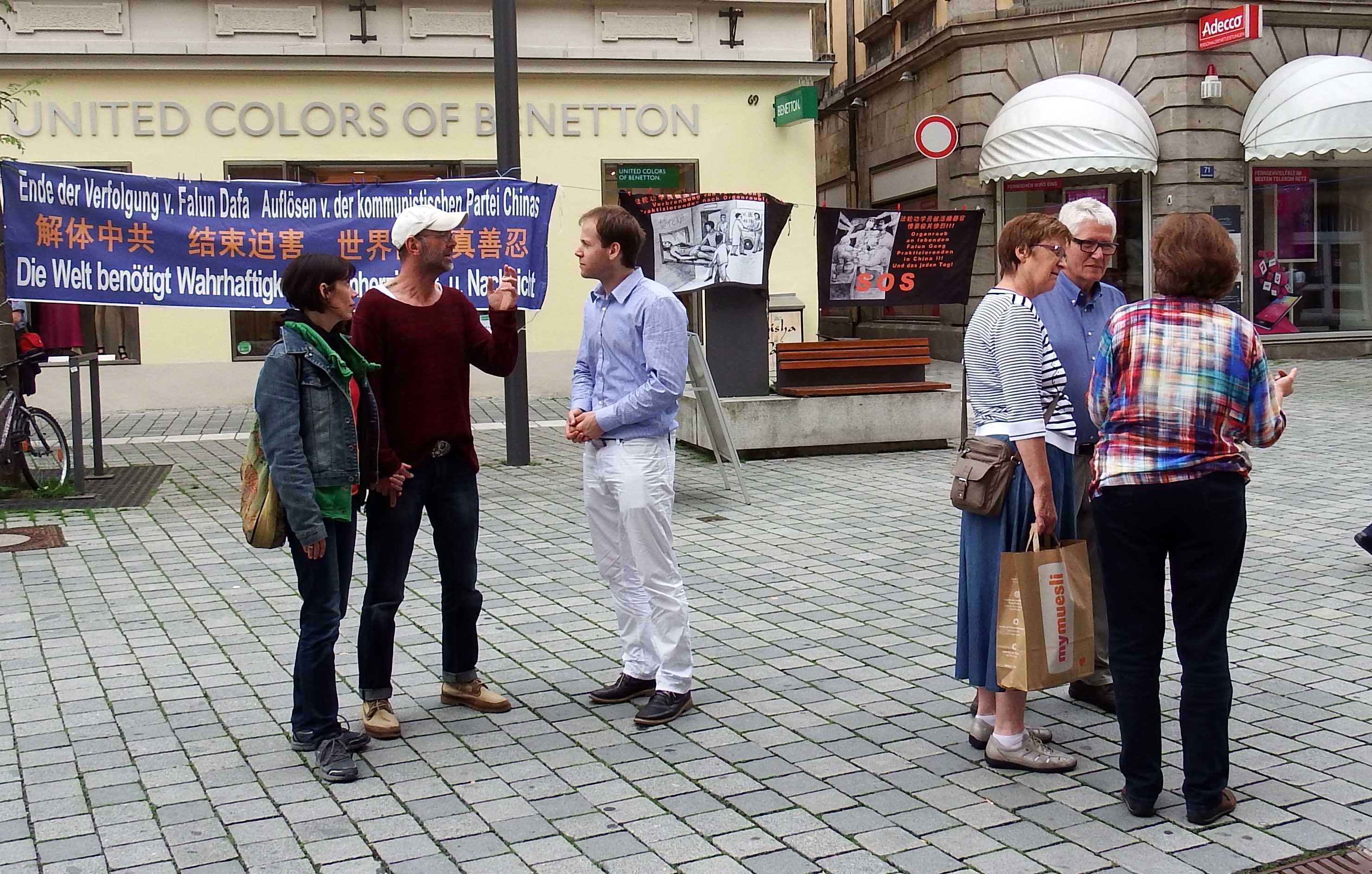 法轮功学员在历史名城雷根斯堡举办信息日,介绍功法,揭露中共迫害