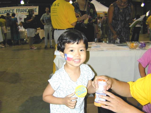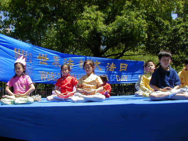 记纽约第二届世界法轮大法日庆祝活动--在亚洲文化节小弟子学炼功法