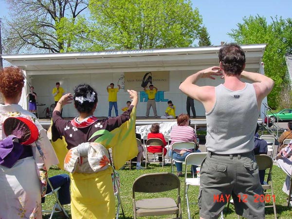明州法轮功学员在双城庆祝法轮大法周及世界法轮大法日--小弟子在亚洲节上进行功法表演