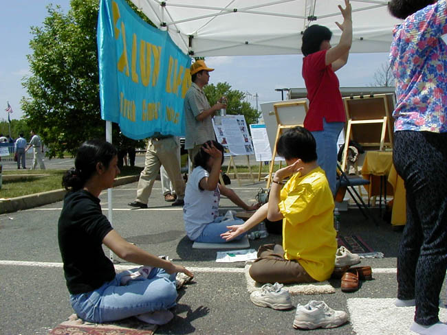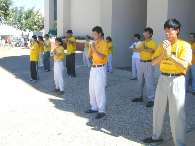 法轮功学员在北加州佛立蒙市团结日弘法--功法展示