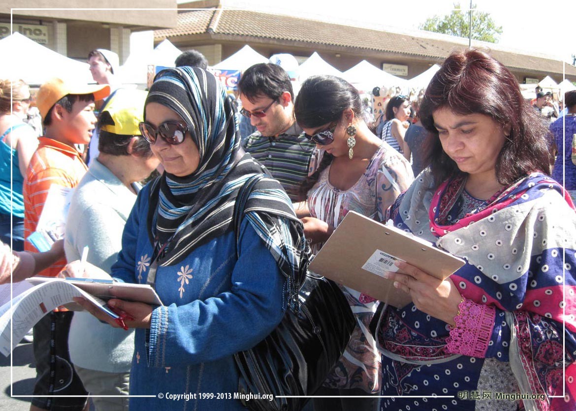 法轮功学员在Fremont市艺术节上征签活动,民众谴责中共活摘暴行