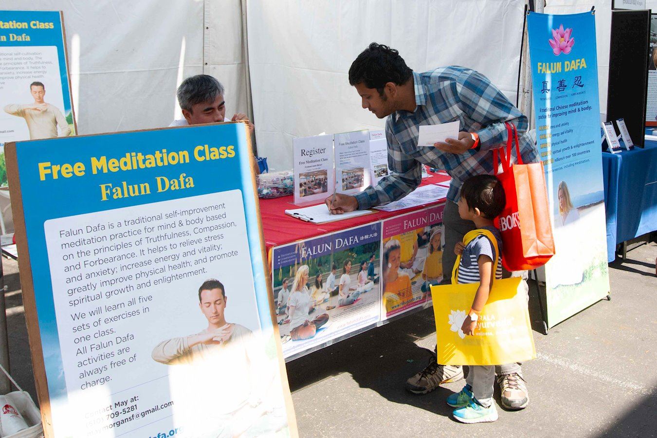 法轮功学员参加文化节,吸引民众体验中国的传统修炼功法
