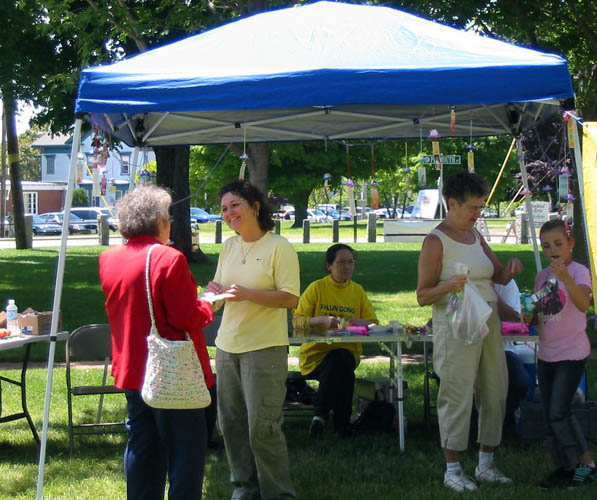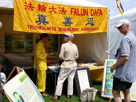 法轮功学员应邀参加麻州东布里姬沃特艺术节图为展位广受欢迎人们了解真相2007-6-10