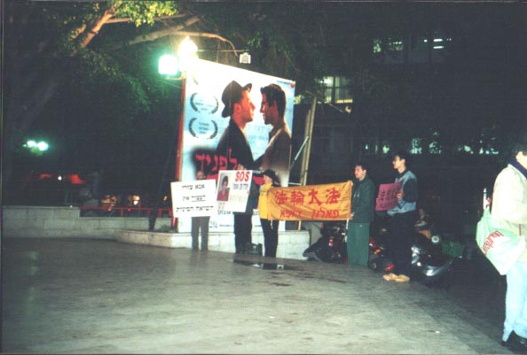 以色列大法弟子在特拉维夫的电影院门口讲真相