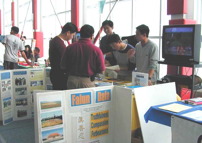 利用工作便利 在公司举办的健康展示会上向同事讲真相