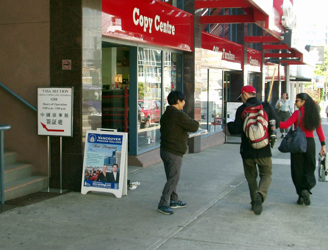 加拿大参加真相汽车之旅的学员向民众讲述中共活摘法轮功学员器官的罪行 2006-8