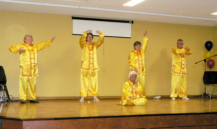 巴黎法轮功学员应邀参加博尚市文艺晚会“中国之夜”图为演示舒缓祥和的功法2008-6-7