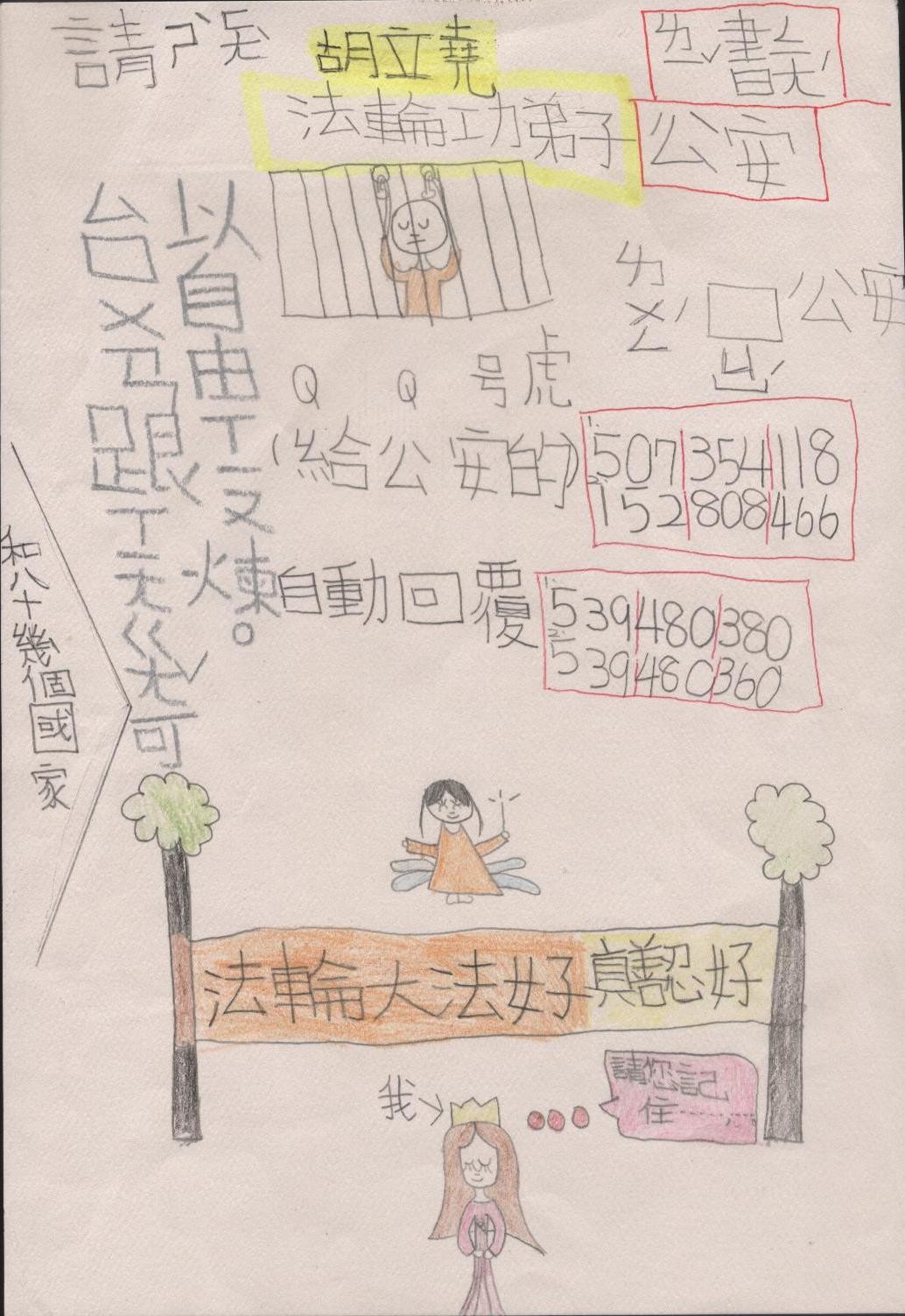 台湾小弟子写的“中秋节关心被非法关押同修”的信件