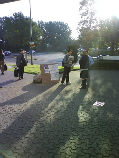 加拿大SOS汽车之旅吁制止中共迫害法轮功的暴行 图为向人们讲述中共迫害法轮功的真相2006-9
