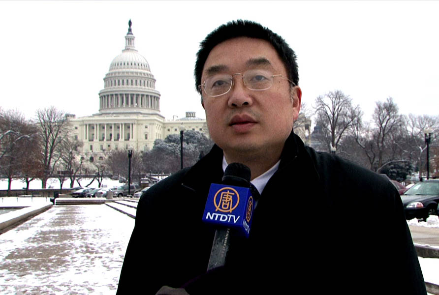 美国众议院人权委员会举行听证中共欺骗伎俩被曝光图为“法轮功人权”发言人接受采访2009-2-9