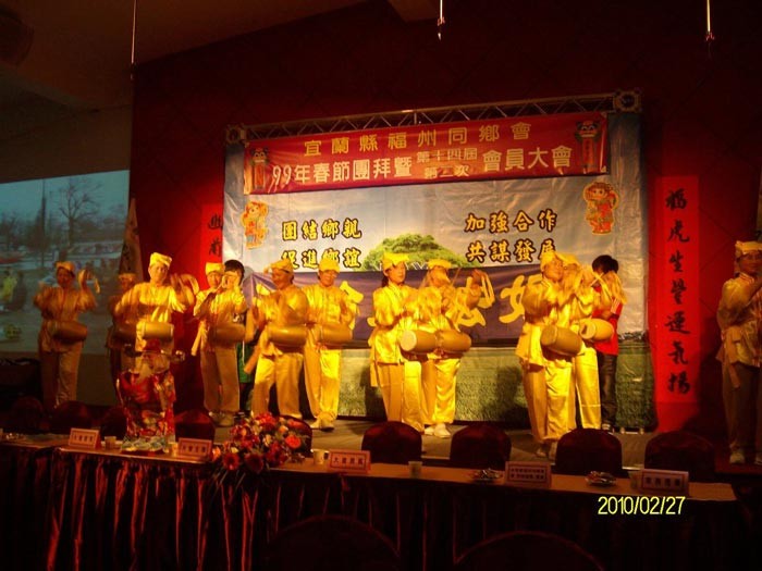 台湾宜兰县福州同乡会新年团拜邀请法轮功团体展示五套功法与表演腰鼓