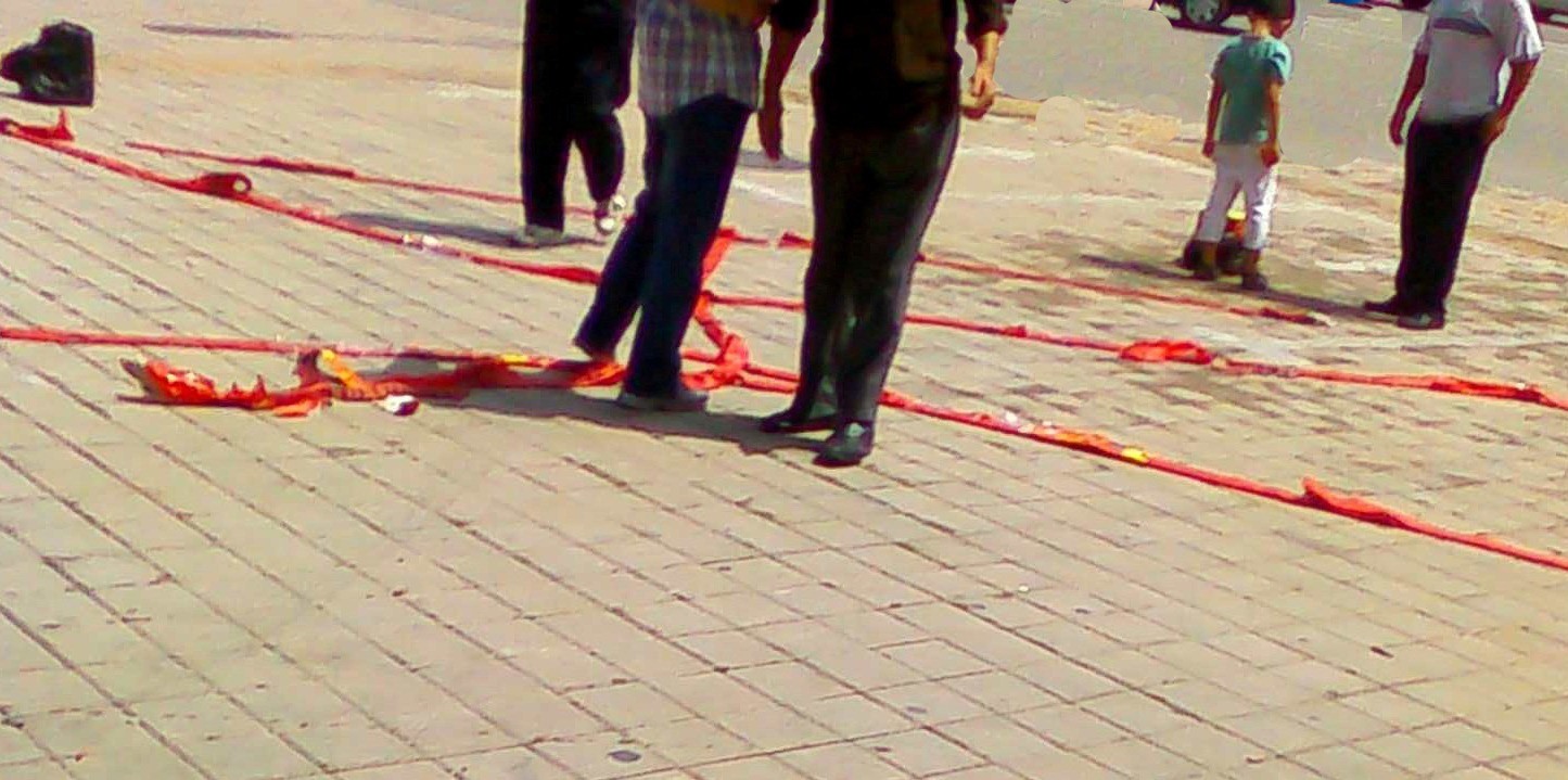 河北民众为了驱逐江魔头的邪灵,鞭炮上放着江泽民的照片