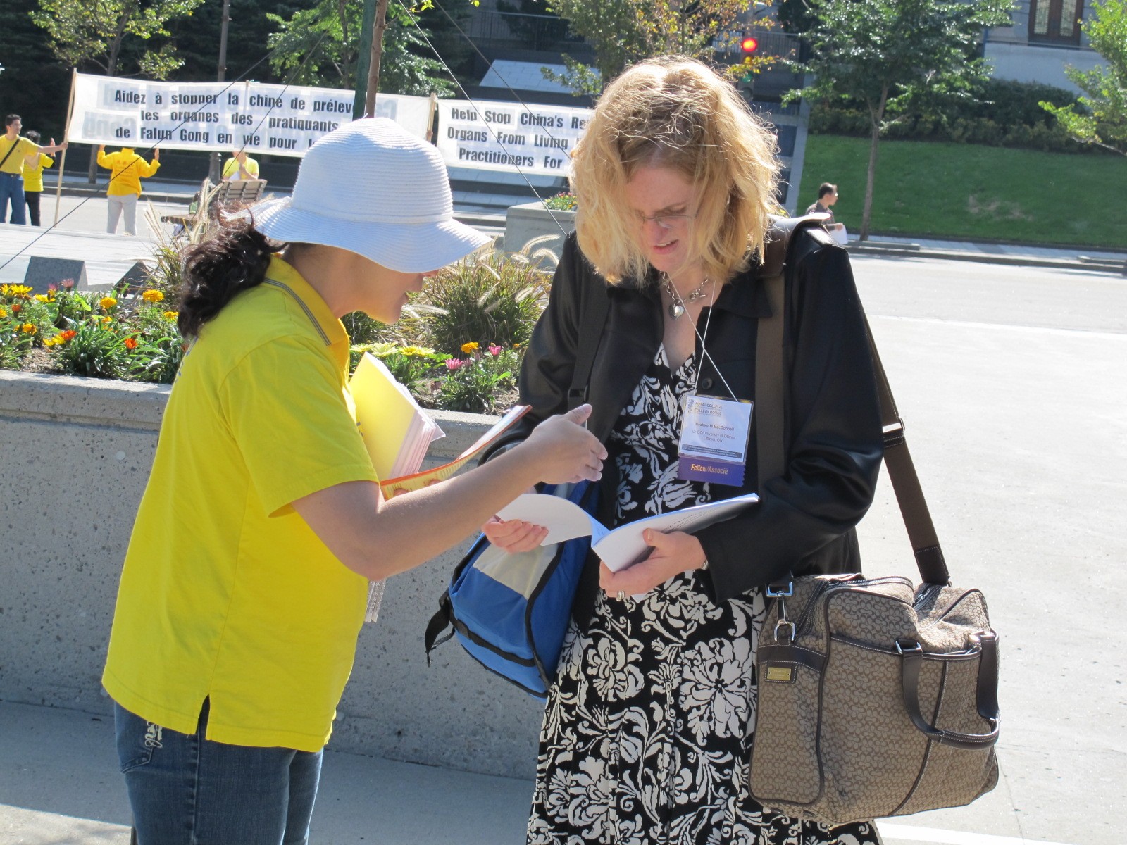 法轮功学员在世界医师年会会场外揭露中共活摘器官