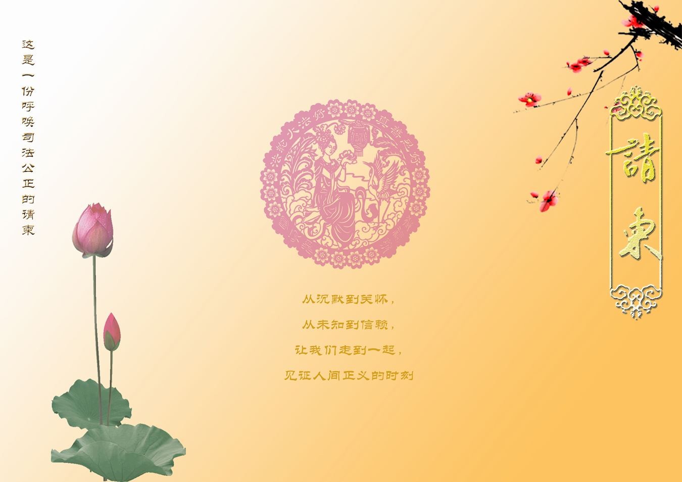 柳艳梅,邀请民众旁听庭审被非法抓捕 图为精美的请柬,请民众去听律师精彩的无罪辩护!