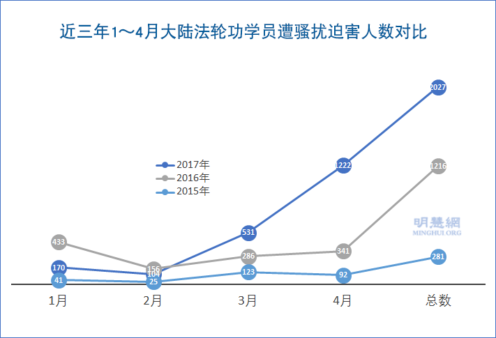 1-4月大陆各省市法轮功学员被骚扰情况统计