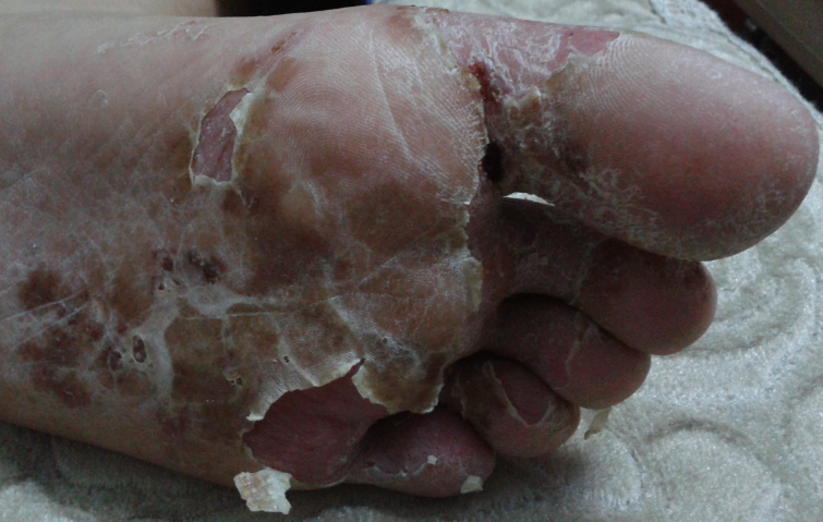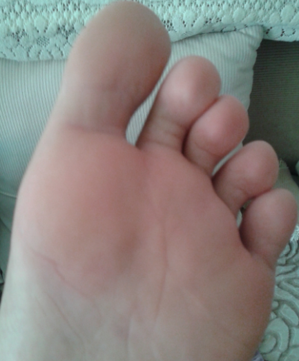 修大法得福,硬鼓包消失,图为脚上如核桃大小的硬鼓包
