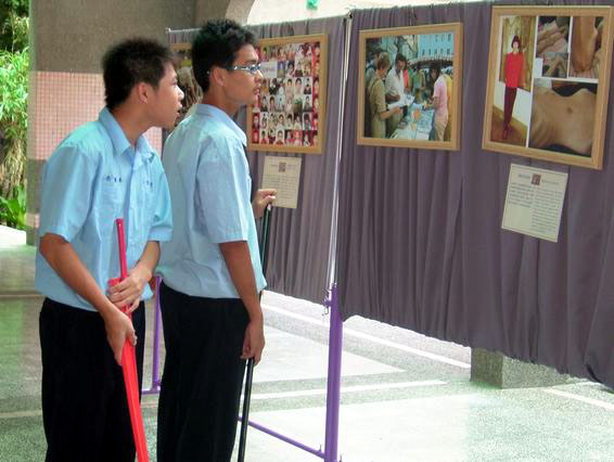 台湾宜兰高商法轮功社团参加校庆活动讲真相并设有图片展揭露中共的暴行.2007-5-5