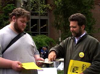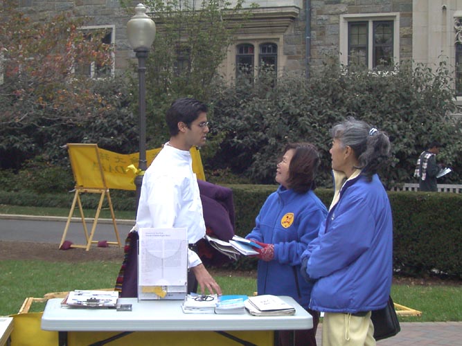 在宾州州立大学的营救受迫害法轮功学员活动--来往学生纷纷接过法轮功真相材料