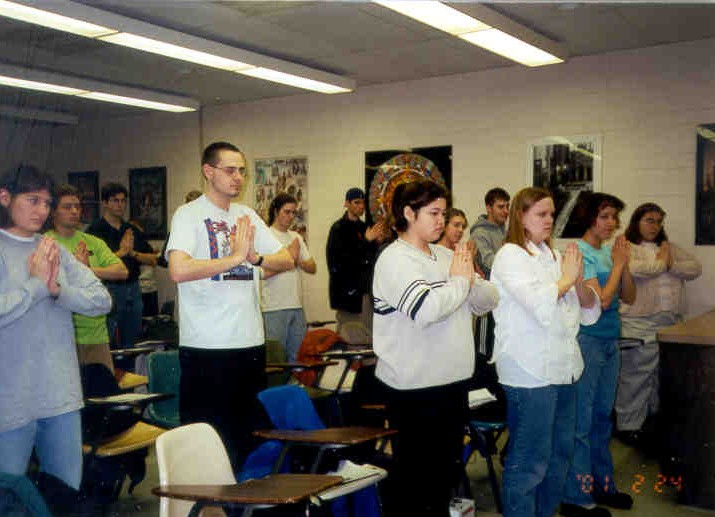 法轮功学员应邀到堪萨斯鲍德文市高中教功--西方学员介绍法轮功