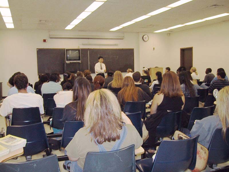美国加州橙县的法轮功学员在南加州尔湾大学课堂介绍法轮大法