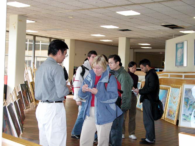 法轮功学员在加州大学戴维斯分校举办举办“真善忍”画展