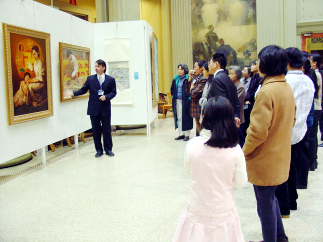 “真善忍美展”在麻省理工学院隆重开幕 图为画展全貌