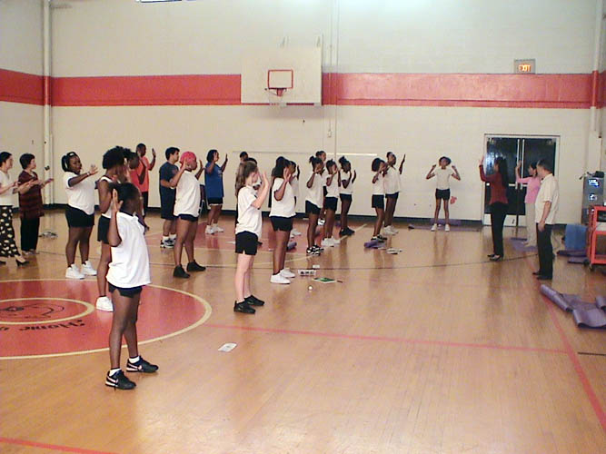 法轮功学员应邀到堪萨斯鲍德文市高中教功--学生们学炼功法