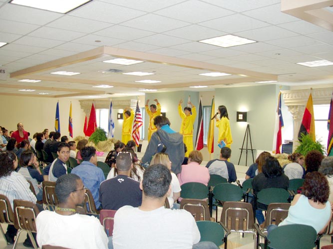 纽约法轮功学员应邀到布朗士区中学向400名学生介绍法轮功真相