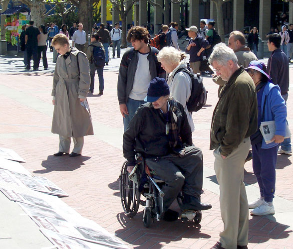 北加州湾区法轮功学员举办反酷刑展 震撼加州柏克莱大学师生 图为学功