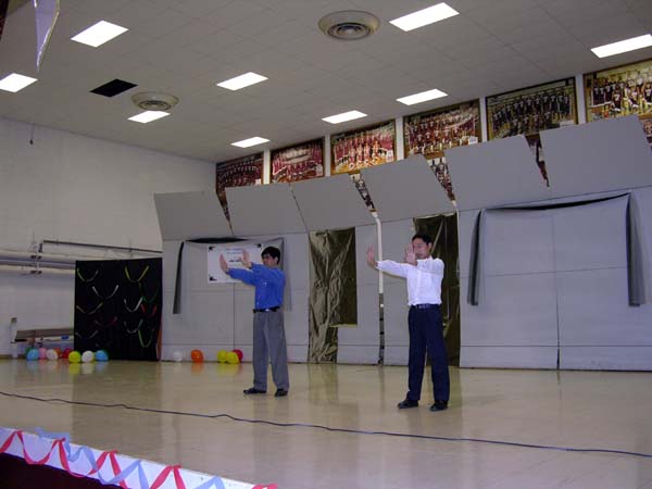 达拉斯法轮功学员应 达拉斯中学校长之邀来到该中学介绍法轮功并义务教功