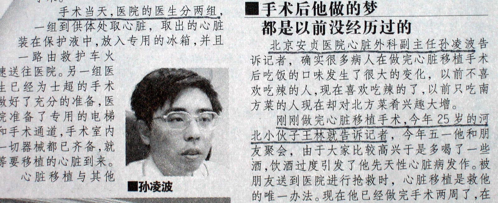 调查线索:2006年5月22日青岛新闻网登载《福建一男子换心再换肝》文中所述脏器来历不明 疑点很大