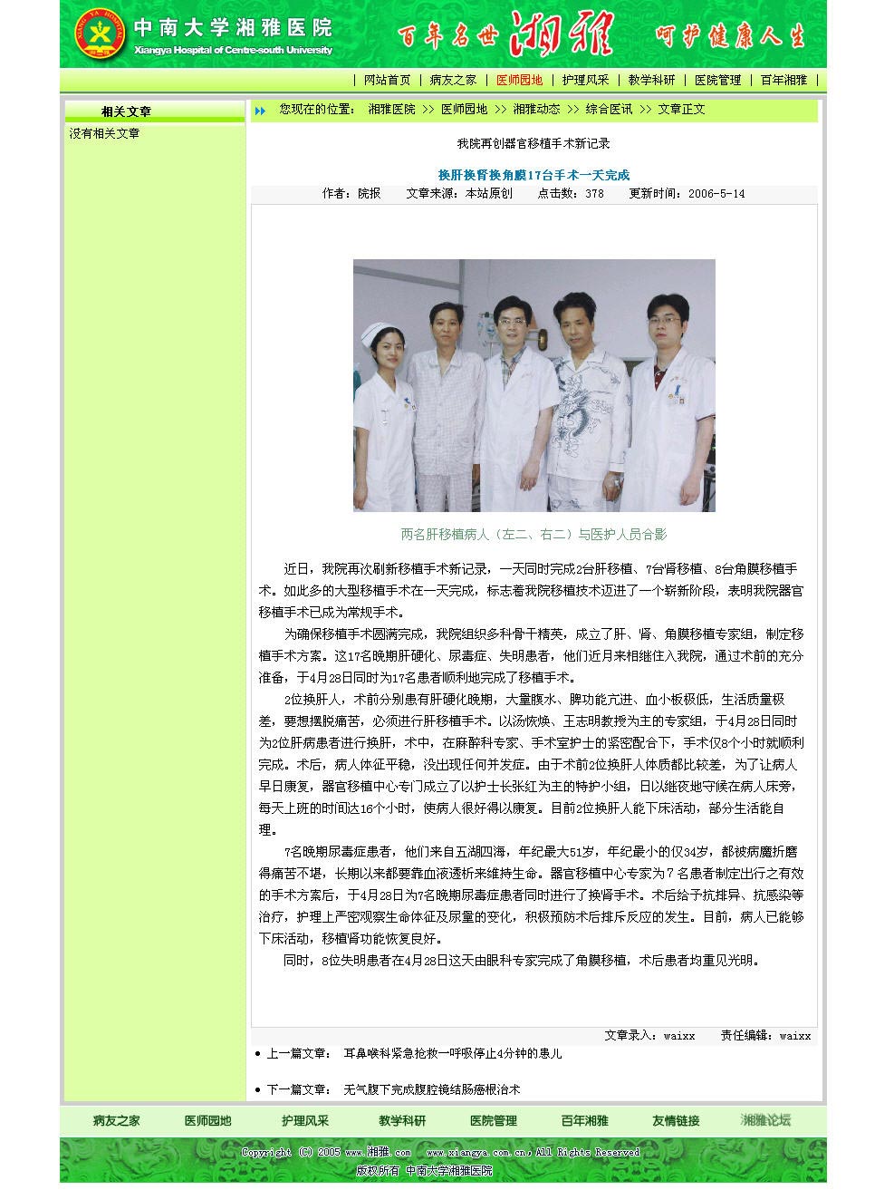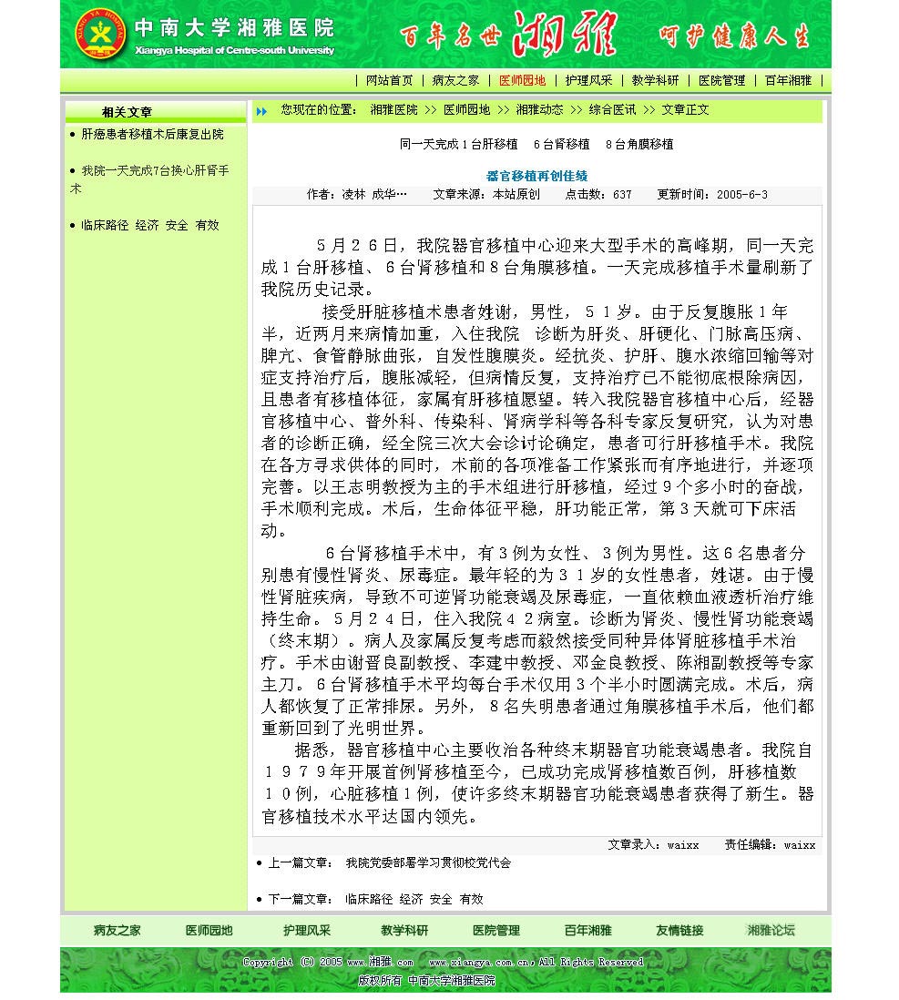 大连大学附属新华医院近期器官移植手术 图为网页快照