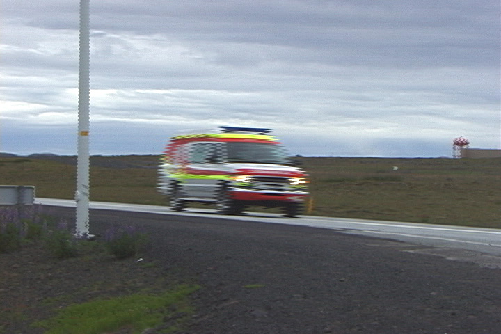 在冰岛机场江xx车队尾的救护车