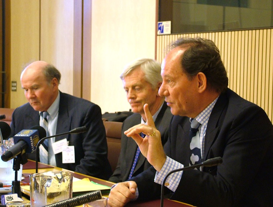 CIPFG在新西兰首都惠灵顿召开记者招待会图为大卫•乔高(左)报告中共活摘器官的证据2007-9-11